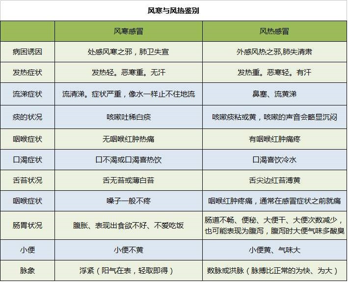 风热感冒:发热重、怕冷轻,喉咙痛,鼻涕或痰偏黄,口渴想喝水。